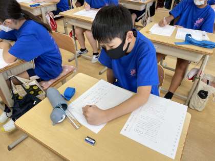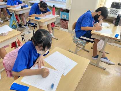 2時間目には、ソーラン節を振り返って作文を書きました。どの児童も今までの練習を振り返り熱心に書いていました。