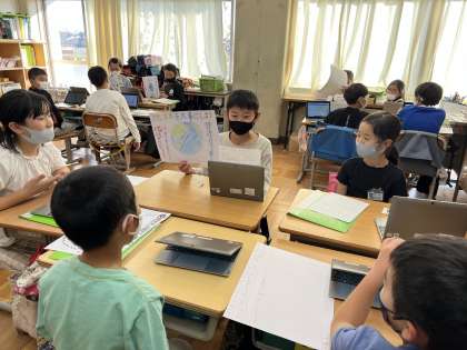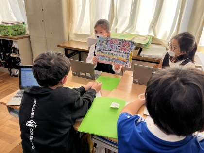 今回は、「エコ活動のすすめ」というテーマで、身近なエコ活動について調べて、まとめたポスターを元にして、中間発表会をしました。自分が取り組んでみたいエコ活動について、根拠をもって友達に説明する子供たち。成長を感じます。どんなエコ活動に取り組んでいくのか、今後の話合いが楽しみです。
