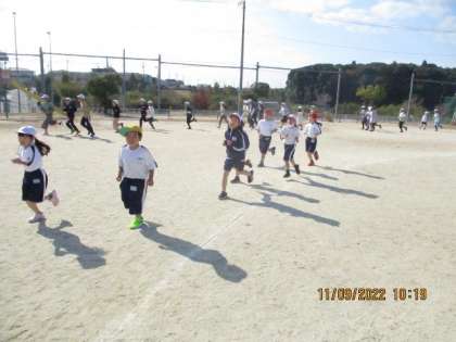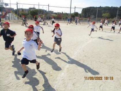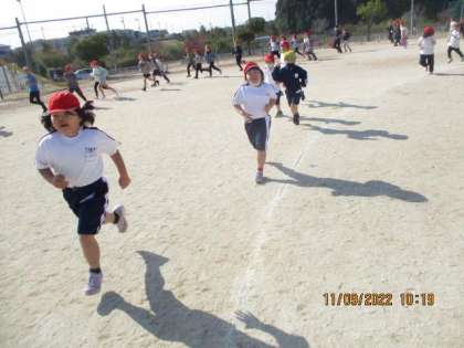 今週、来週は、業間休みに「持久走タイム」がもうけられています。11月22日に行われる持久走記録会に向けて、長距離に慣れ、持久走の力を伸ばしていこうというものです。1年生は、校庭の内側のトラックを走ります。走り終わると、「やったあ。今日は8週走ったよ。」とうれしそうに報告してくれました。