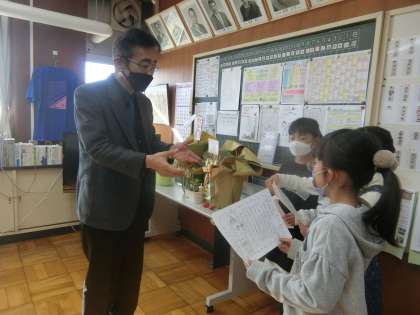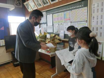 2年生の様子です。校長先生に、お手紙を渡しにいきました。