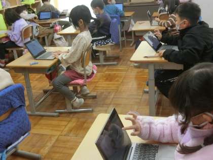 いつも元気な1年生。授業中は、集中して学ぶことができています。