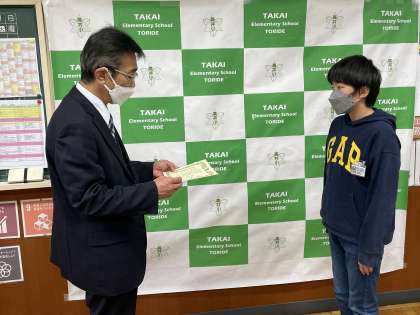 校長先生から、賞状を受け取る姿も立派でした。