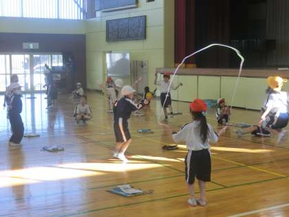 短縄。とても上手になりました。子供たちの表情が輝いています。