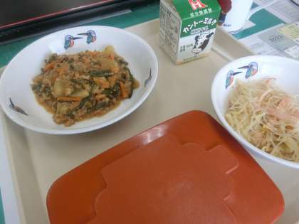 今日の給食です。ほっかほかの給食。毎日、とても美味しいです。