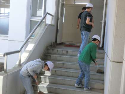 明日の入学式に向けて、高学年の児童が早速、準備をしてくれています。