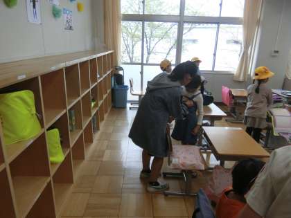 5・6年生の児童が、1年生の手伝いを一生懸命、行ってくれました。