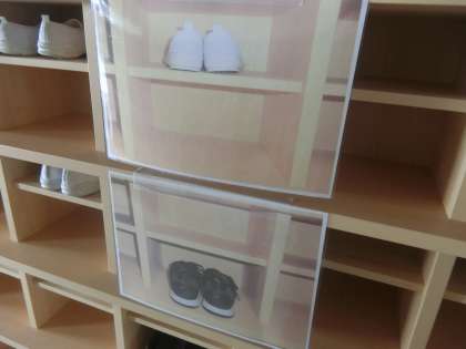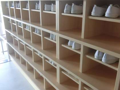 1年生のくつ箱の様子です。きちんと踵が揃っていて、整然と並んでいます。
