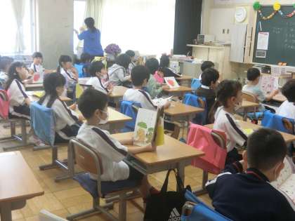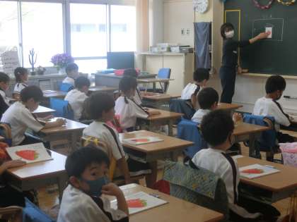 今日も元気いっぱいの1年生。教室の中に、温かい空気が流れています。