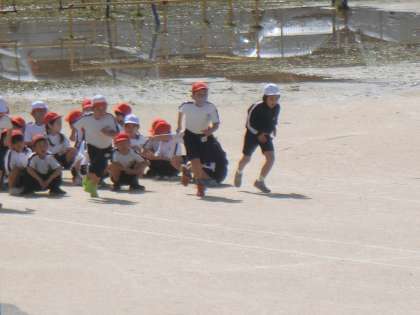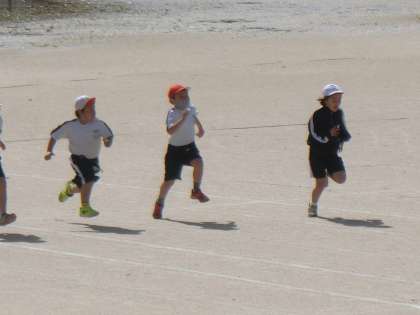 今日は、50m走に挑戦しています。子供たちは、前向きに取り組むことができています。