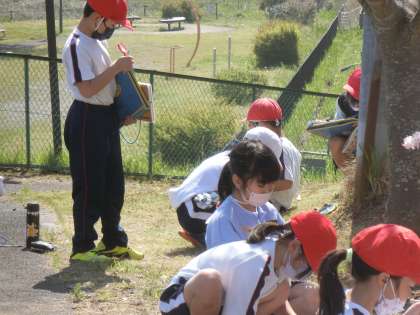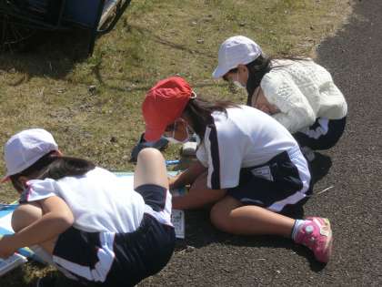 今日は、『自然のかんさつ』を行っています。天気もよく、子供たちは楽しそうに自然をスケッチしています。
