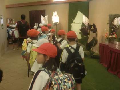 キーホルダーづくりが終わると、『アンデルセン』の幻想的な世界に触れました。