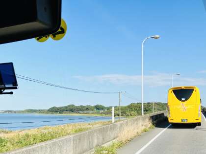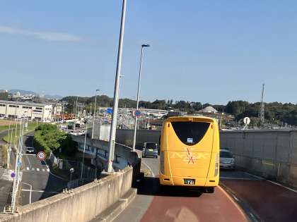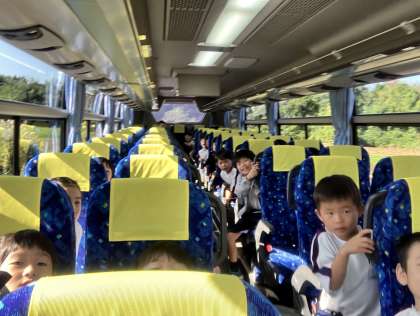 校外学習のバスが牛久女化を通過しました。楽しくDVDをみています。
