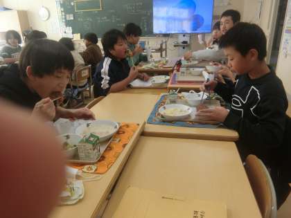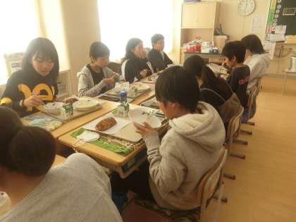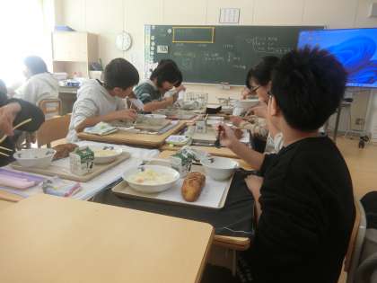 子供たちが大好きなメニュー。今日は、会話より食べることに集中しています。