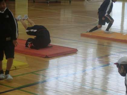 しかも・・・『後転』。子供たちは悪戦苦闘しながらも、前向きに取り組んでいます。