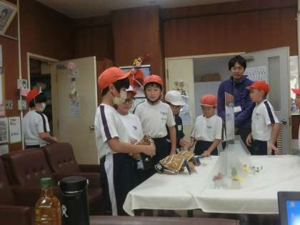 大谷選手からのプレゼントを見に。子供たちが交代で校長室に来ています。