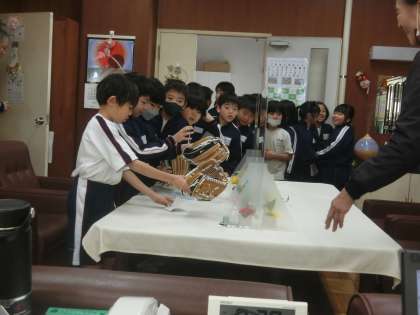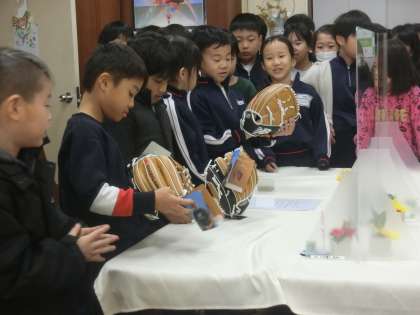 昨日、大谷選手のグローブを見られなかったクラスは、今日、見に来ています。