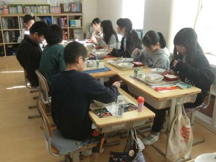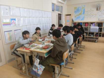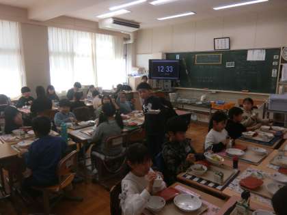 美味しい給食を食べて、子供たちは自然に笑顔になっています。