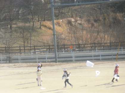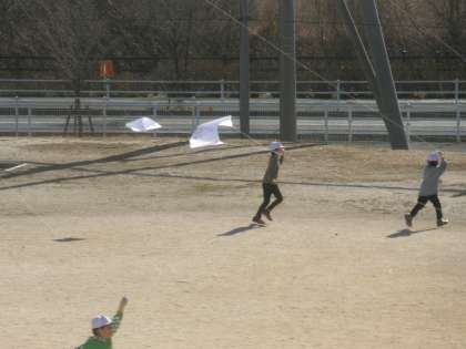 『凧あげ』。午前中もやりましたが。凧を改良してのリベンジ。