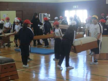 『跳び箱』の準備も協力して行うことができていました。成長しましたね。