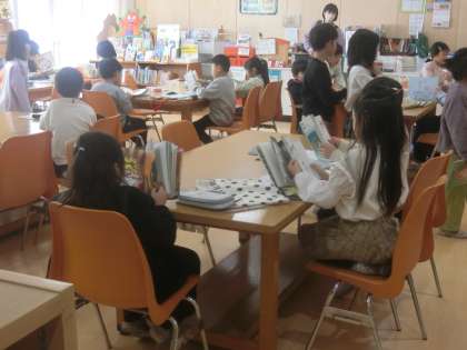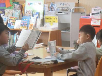 図書室内で静かに読書。子供たちは真剣に本と向き合っています。