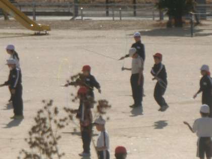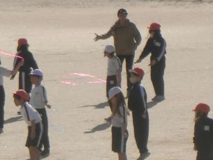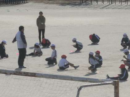 今日は『短縄跳び』を行っています。寒い中ですが、子供たちは前向きに活動することができています。