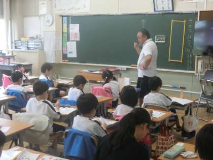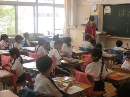 1年生の授業の様子です。グランドでの体育を終え、教室へ。子供たちは全然疲れた様子もなく、前向きに学習に取り組むことができています。