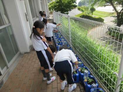 アサガオの芽が出て、双葉が育ってきました。子供たちも、水やりのお世話をがんばっています。「大きくなったね。」とアサガオに声をかける姿が、とてもほほえましいです。今週末、間引きしたアサガオを持ち帰りました。ぜひ、ご家庭でも移植をして、育ててみてください。