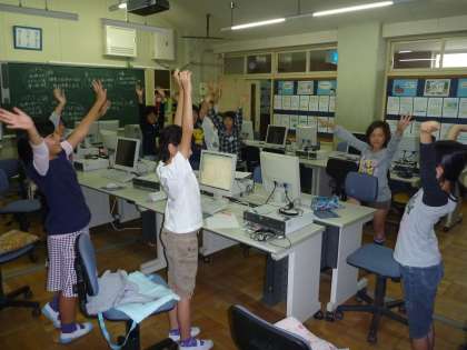 今日の5・6時間目は、1日目の夜に行われるキャンプファイアーの出し物の練習を行いました。はじめに、コンピュータ室でグループごとに出し物やゲームについて調べた後、話し合いを行い、決まったグループから練習をしました。