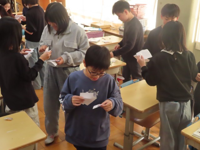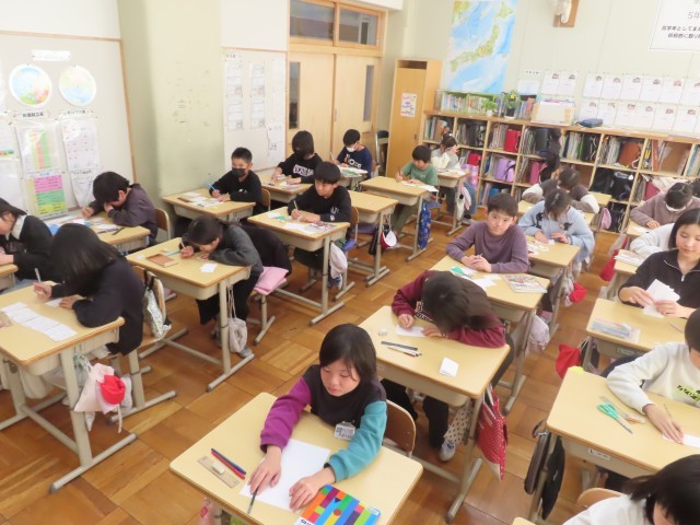 一時間の授業の中で、必死に友達にメッセージを書く姿。素晴らしかったです。授業時間の最後に、心を込めて書いたメッセージを交換しました。