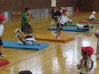 1年生の体育の授業の様子です。『ゴロン、ゴロン!』。 一生懸命に頑張っている姿...