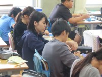 5年生の授業の様子です。家庭科の授業で、裁縫を行っています。 子供たちの心に寄...
