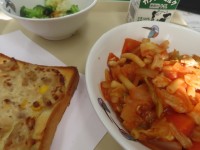 今日の給食です。今日は『スパゲッティミートソース』。『野菜スープ』。 ミートソ...