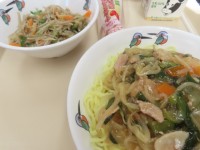 今日の給食です。今日も大人気メニュー。 今日の献立は『もやしとにらのあんかけ焼...