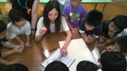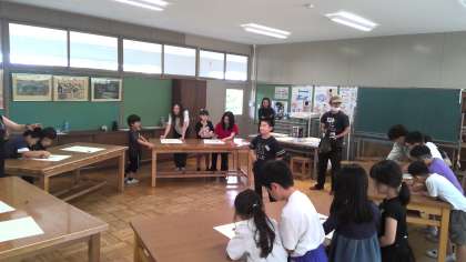 国外出身のアーティストの先生と自己紹介をしたり、木炭を使って絵を描いたりしました。