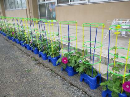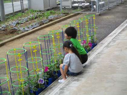 1年生 水やりで 公開日 2024/06/13 更新日 2024/06/13 1年生 あさがおに水やりをしています。 本当に大きく元気に育っているのあさがおを前に友達同士、何やら話し込んでいる様子です。