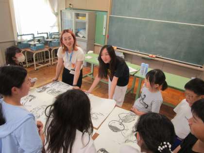 待ちに待った「となりのスタジオ」が始まりました。まずは韓国のアーティストさんの自己紹介を聞き、4年生もそれぞれ自己紹介をしました。グーグルアースを使った紹介に歓声が上がっていました。
