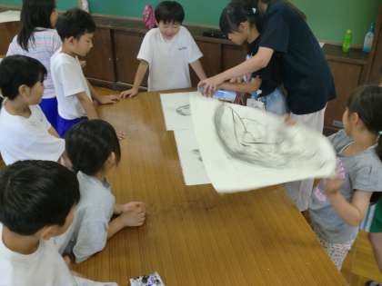 2時間目は、木炭を使って絵を描きました。