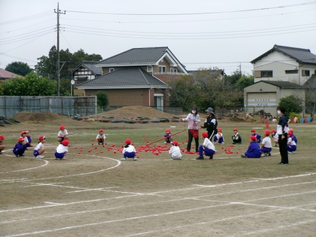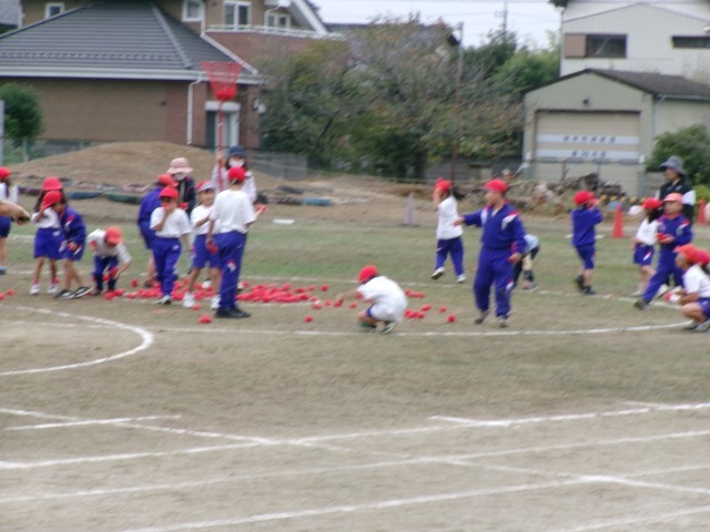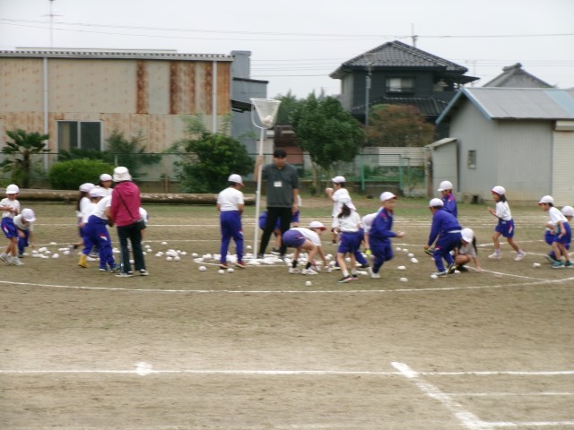 まだ玉をかごに入れている児童がいたため、玉の数を数える際に、審判係りの先生から、「○組、○個