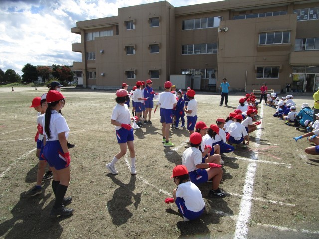 リレーでは下級生に声をかけ、走順に並ぶといよいよリレーが始まりました。今日はグラウンドのコンディションがよくないため早歩き競走でしたが、接戦で大盛り上がりでした。月曜日の練習では思い切り走りたいですね。