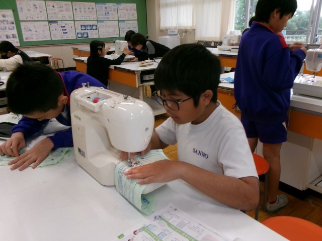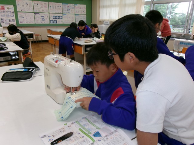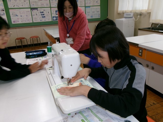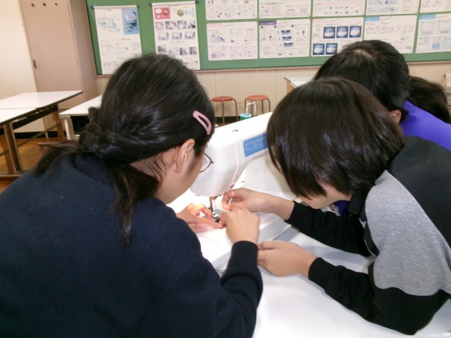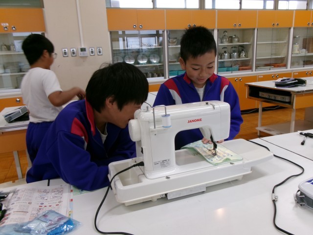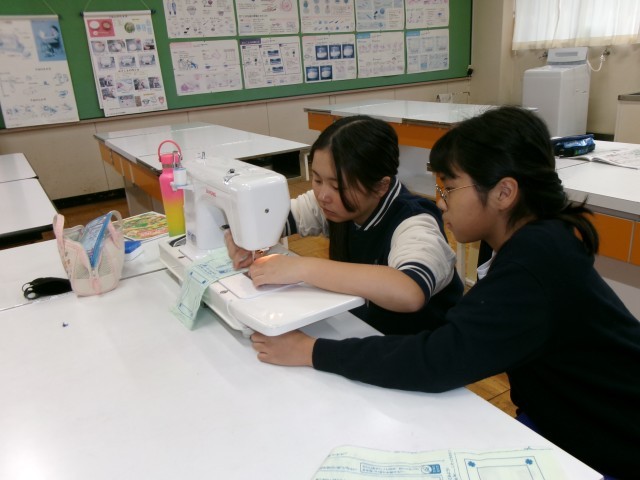10月22日(水)の2・3時間目に家庭科でミシン縫いに挑戦しました。