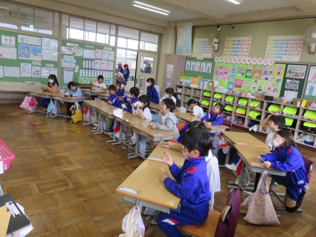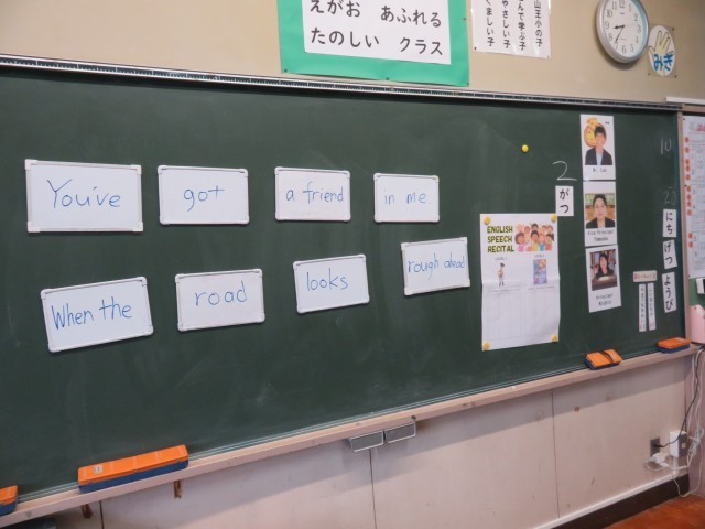 英語の時間は、1年生の児童がとても楽しみにしている時間です。