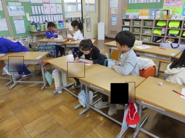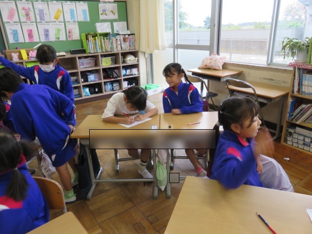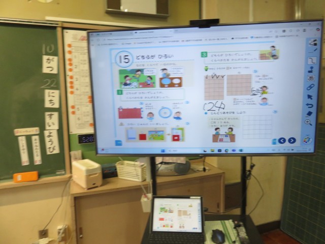 「どうやって比べたらいい?」と聞くと、「テープで横を測って比べる」という考えが出ました。