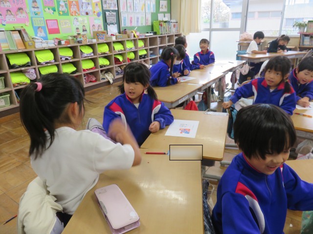 「でも、それは長さ比べだよね。」と言うと「端を合わせる!」というアイデアがでました。