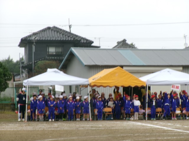 雨が降ってきてしまったので、児童の入場はカットし、テントの下で開会式を