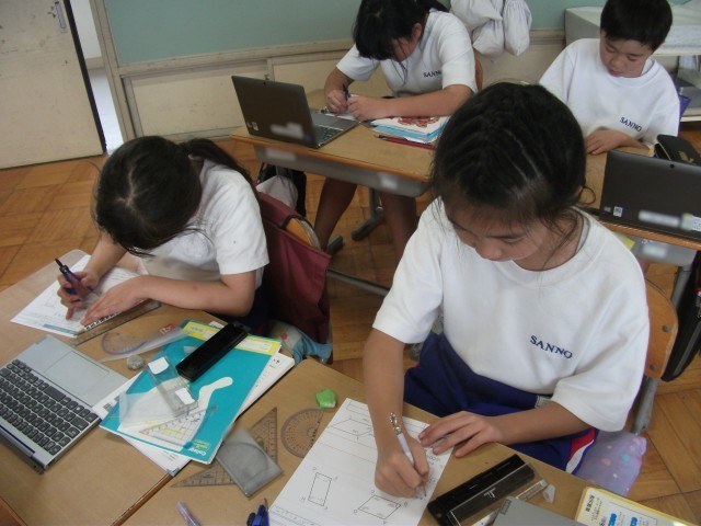 今日の授業では、平行四辺形にはどのような特徴があるのかについて調べました。
