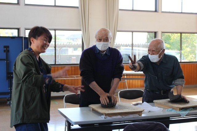 お友だちとなかよく談笑しながら、土を練ったり、
