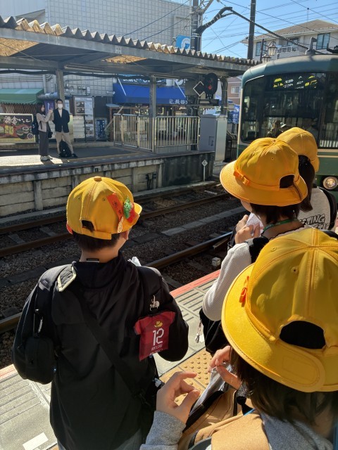 5・6年 修学旅行 江ノ電 公開日 2025/11/11 更新日 2025/11/11 全学年 多くの行動班が江ノ電に乗って鎌倉駅まで移動しました。 小さい電車ですが、満員です。 さすが、鎌倉。 大人気です。