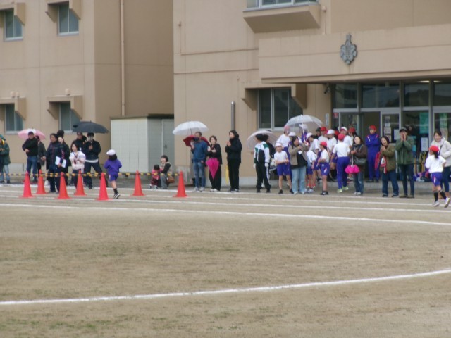 曇り空で時折、小雨が降る中ですが、どの学年の児童も完走することができました。