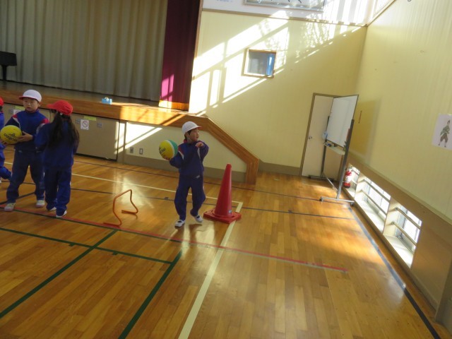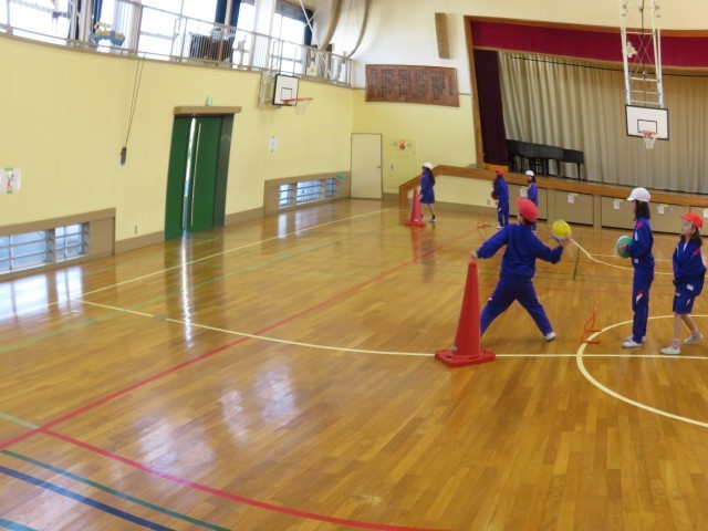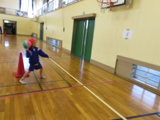 「片手で遠くまで投げるにはどうすればいいの?」「コントロールよく投げる方法は?」など、活動を通して考えていきます。