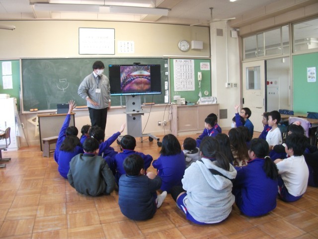 今日の朝の時間は、読書ではなくて「朝鑑賞」を行いました。3年生の教室で3・4年生が一緒に行いました。